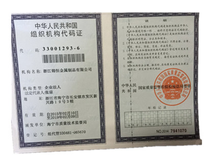 浙江錦恒金屬制品有限公司組織機構(gòu)代碼證